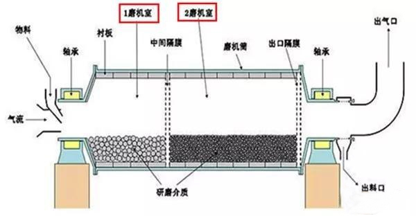 若物料粒度较大,研磨体的冲击和研磨作用就很难适应,球磨机第一仓就被迫装入较多的钢球,以增强冲击研磨物料的能力。一仓担负着破碎作用,造成粉碎过程不合理。而破碎机的功能利用率高,增加磨头破碎,减小入磨粒度,既可降低能耗,又可增加产量。