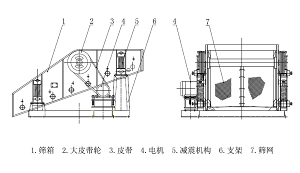 型号含义示例;2ZD1530J, 2表示双层、Z表示座式、D表示单轴、15表示筛面宽度(dm)、30表示筛面长度(dm)、J表示橡胶筛(非橡胶筛不注)。