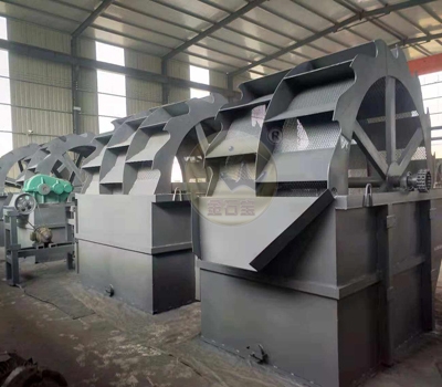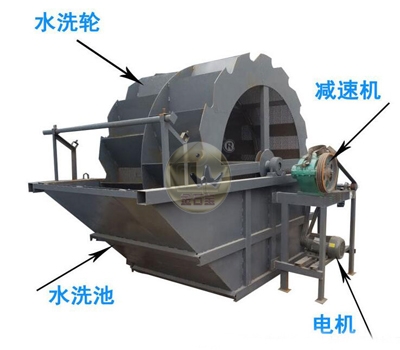 轮式洗砂机具有洗净度高,结构合理,处理量大,功耗小,洗砂过程中砂子流失少,尤其是洗砂机传动部分均与水、砂隔离,故其故障率大大降低。